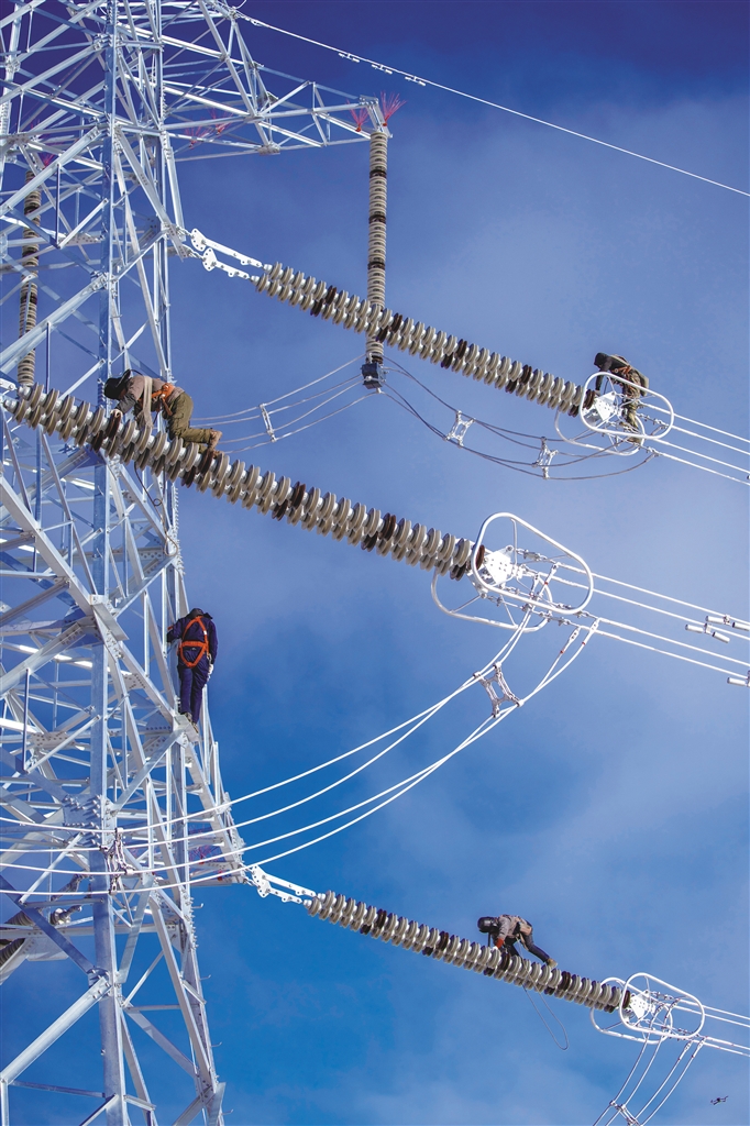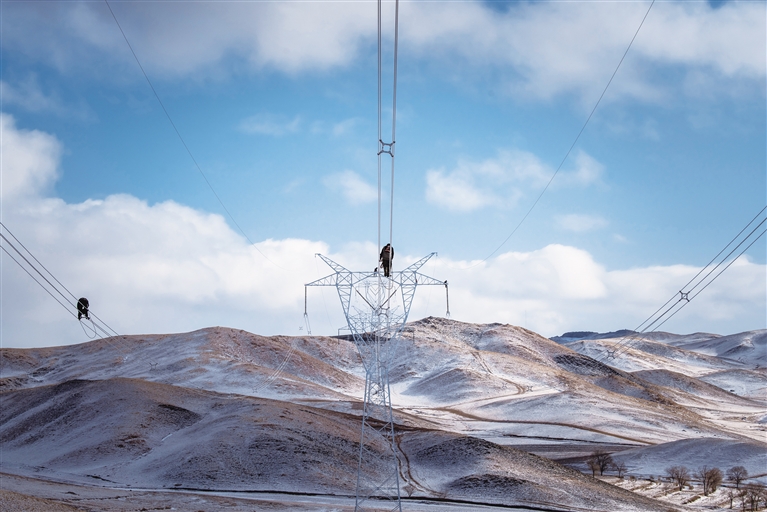 从绿草萋萋至白雪皑皑,从黎明破晓到夜幕降临,沐浴着国家绿色能源开发的春风,“空中三峡”在辉腾锡勒草原拔地而起。宁静的草原上风机运转,源源不断的电能划破夜的沉寂,点亮城市的繁华。在这场特殊而艰巨的攻坚战中,还有很多像王海青、王海龙这样参与工程建设的干部员工,他们早已没有了节假日的概念,整日加班加点、风餐露宿,过着与水泥、电杆、设备为伍的枯燥生活。如今,一座座巍巍耸立的铁塔、一条条熠熠生辉的银线见证着他们胸怀绿色梦想,勇创工程奇迹的楷模精神。