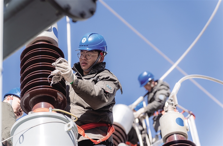 巴彦淖尔供电公司电能计量中心互感器班员工在隆兴昌220千伏变电站开展互感器春季巡检工作。李维伦