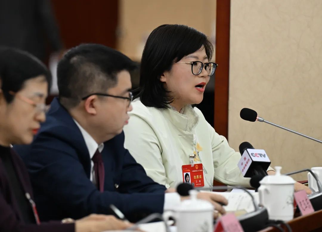 3月5日下午,全国人大代表王臻(右)在审议政府工作报告时建议,给予西部地区在科技人才资源配置上的更大支持,加大力度布局建设重点领域科研院所,解决西部地区科技人才短缺情况。草原全媒记者 孟和朝鲁 摄
