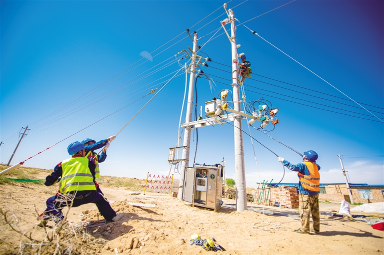 9月15日,在阿拉善左旗腾格里查拉湖2号公变施工改造现场,阿拉善供电公司今年首批清洁能源取暖设备配套电网建设改造项目正在加紧施工中。据了解,本次“煤改电”项目涉及台区76个,计划总投资约1536万元。