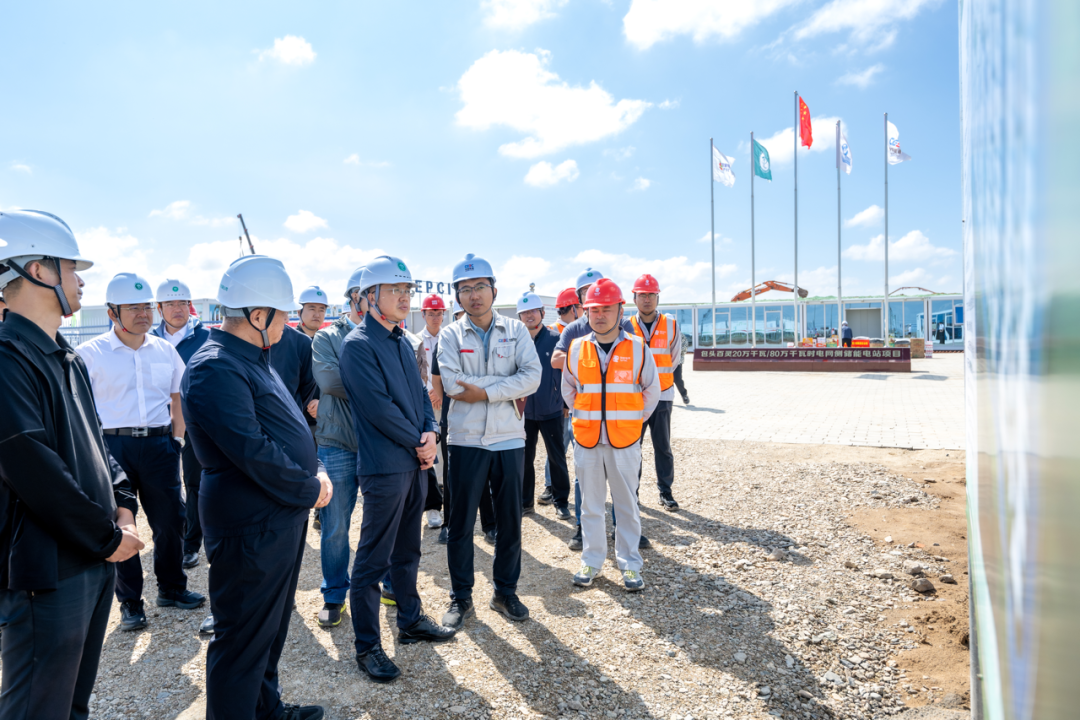 调研组实地检查达茂旗百灵电网侧独立储能工程建设现场和百灵500千伏变电站接入间隔