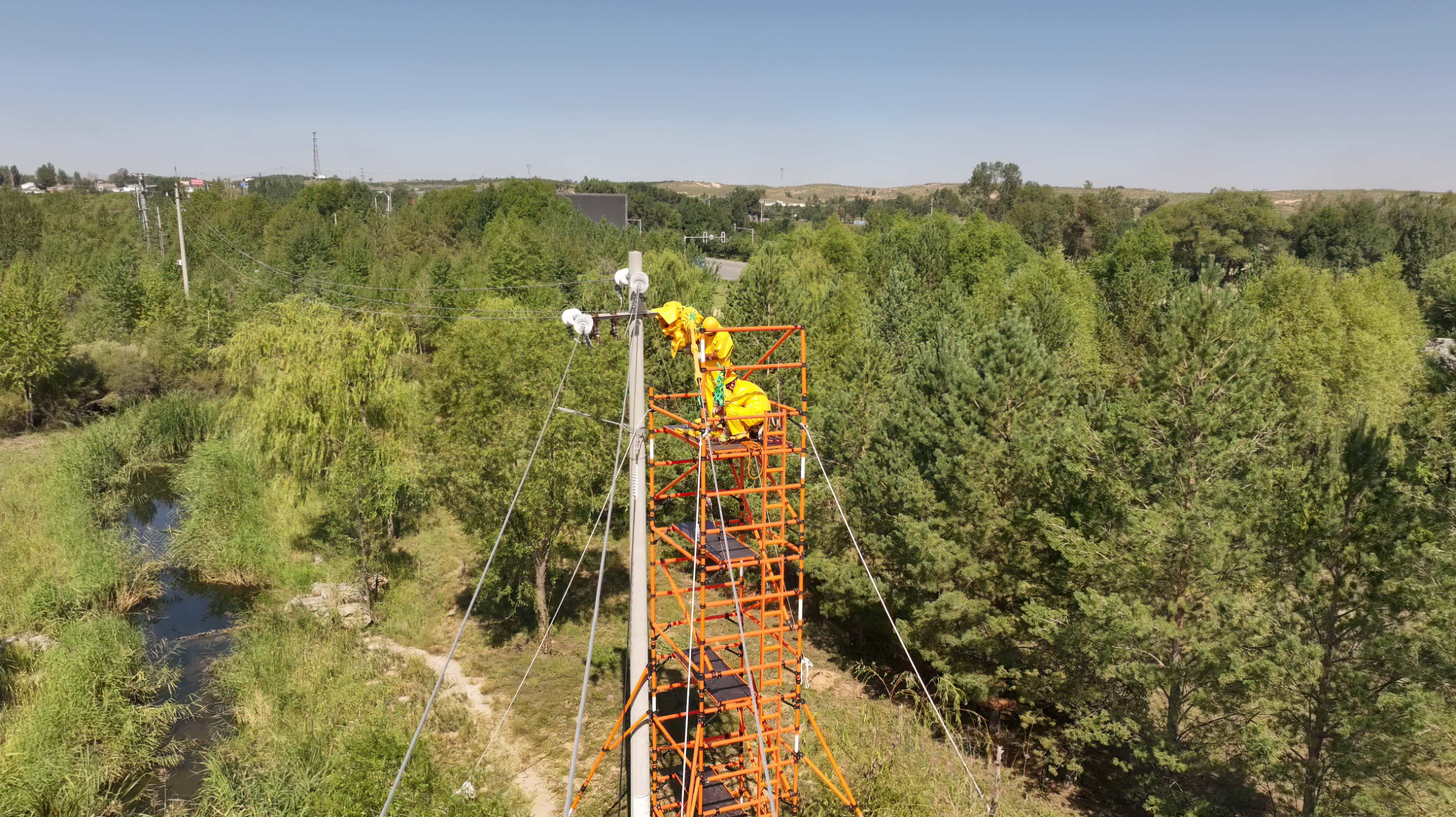 8月23日,在35千伏三园变电站921科普区线92号杆作业现场,鄂尔多斯供电公司配电带电作业处在集团公司范围内首次“解锁”了全新不停电作业的新方式——利用绝缘移动平台开展带负荷拆除隔离刀闸作业任务。此项作业是助力公司推进中压配电网“零计划停电示范区”建设工作、提升客户用电获得感的又一重要举措。作业现场,该处带电班作业人员严格按照标准化工作流程在平台上进行操作,地面人员和现场安全监护人员各尽其责,经过4个多小时的协同操作,绝缘脚手架带电作业顺利完成,确保线路800余户居民用电“零影响”。