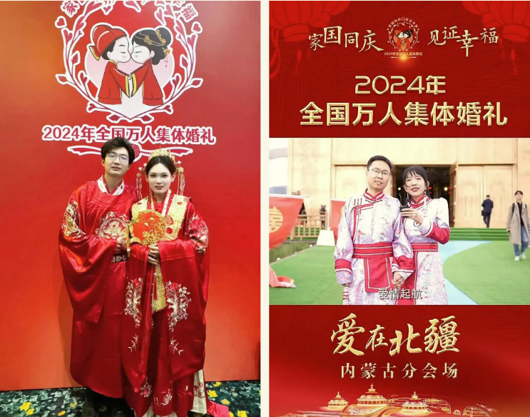 9月22日,由全国妇联、国家民委、民政部、农业农村部、中央军委政治工作部联合举办的“家国同庆 见证幸福”2024全国万人集体婚礼在全国50个会场盛大举行,来自内蒙古电力集团的13对新人相聚内蒙古分会场敕勒川草原千人会议中心,共庆祖国华诞,见证百年之好。