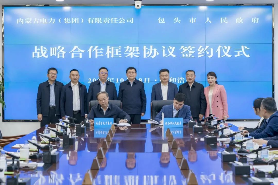 10月18日,内蒙古电力集团与包头市人民政府签署战略合作框架协议,包头市委副书记、市长孟庆维,内蒙古电力集团党委书记、董事长张海峰出席签约仪式并就双方深化合作进行座谈。