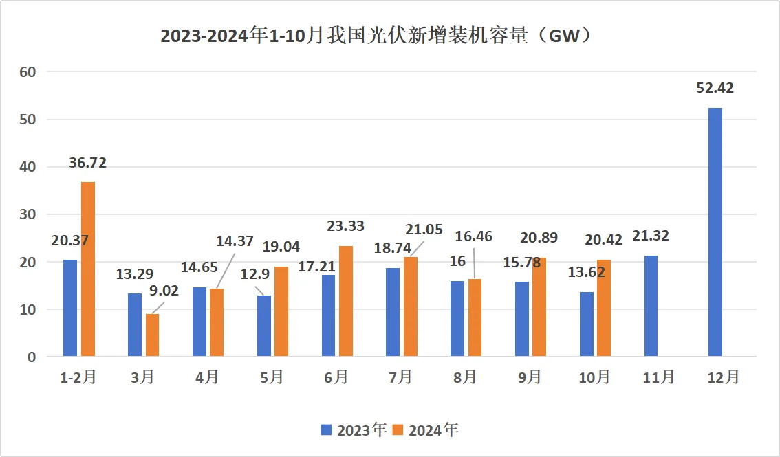 11月22日,国家能源局发布1-10月份全国电力工业统计数据。2024年1-10月,我国光伏新增装机181.3GW,同比增长27.17%。10月光伏新增20.42GW,同比增长49.92%。