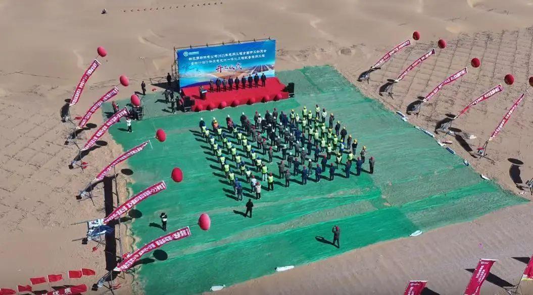 3月31日,在鄂尔多斯市杭锦旗,鄂尔多斯供电公司举办2025年电网工程全面开工动员会暨防沙治沙和风电光伏一体化工程配套接网工程开工仪式。