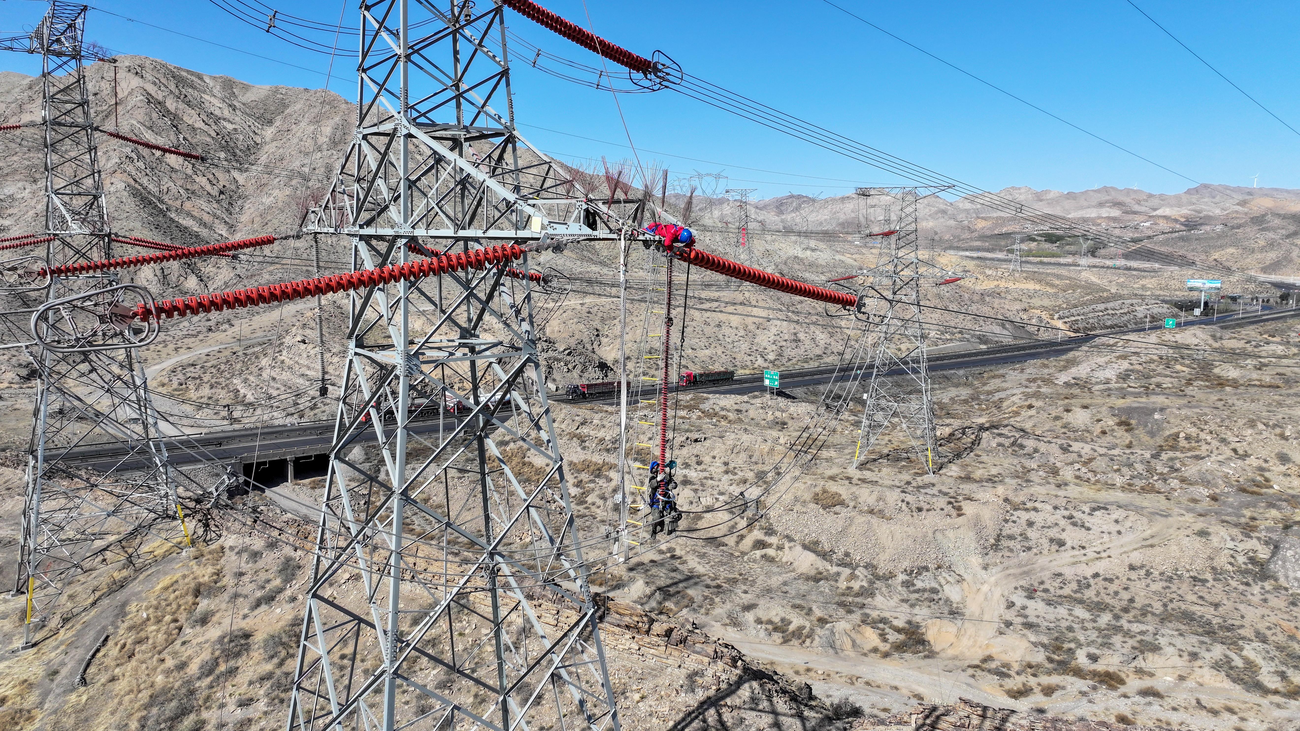 500千伏吉远双回线位于阿拉善地势陡峭的大山和荒漠之中,两条线路全长246.096公里,铁塔609基。本次检修历时15天,包含消缺、预试、绝缘子单改双、棒瓷绝缘子更换、防污闪涂料喷涂等多项作业项目,线路检修后将有效提升区域电网设备安全运行水平,为迎峰度夏期间电力供应做好充足准备。