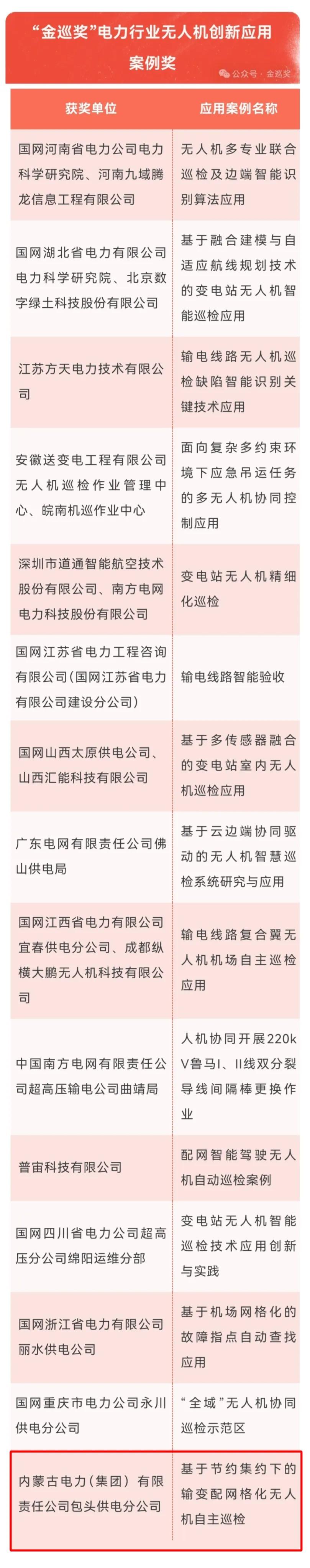 “金巡奖”作为电力无人机领域权威奖项,旨在表彰推动行业技术革新与应用的标杆案例。内蒙古电力集团包头供电公司将以此次活动为新的起点,持续深化无人机技术与电网业务的融合,探索“空天地一体”协同巡检模式,为保障电网安全运行、服务“双碳”目标实现注入创新动能。