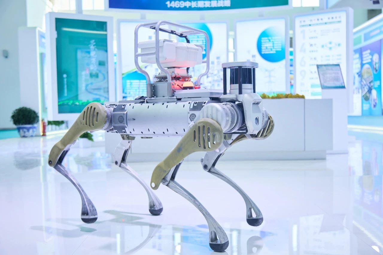 不远处,机器狗巡线机器人正在“模拟上岗”,让人明白电网运维早已进入“智慧时代”。旁边的“蒙电芯”电子标签样品也很吸睛,别看它小巧,却是电网智能化的重要“神经末梢”。