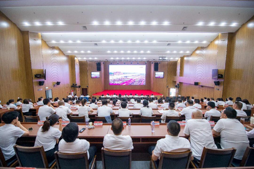 鄂尔多斯供电公司组织公司领导、机关本部成员及全体新员工共同观看直播。