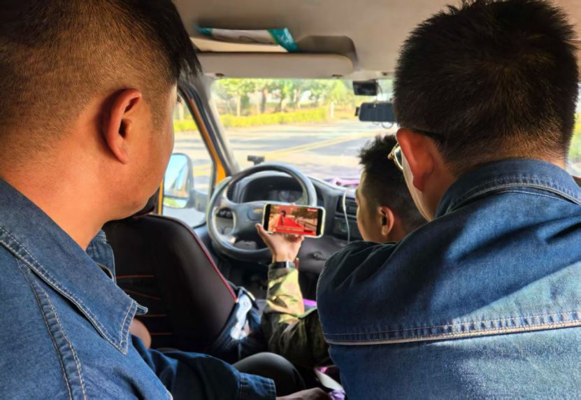 乌兰察布供电公司一线工作人员在抢修车上观看直播。