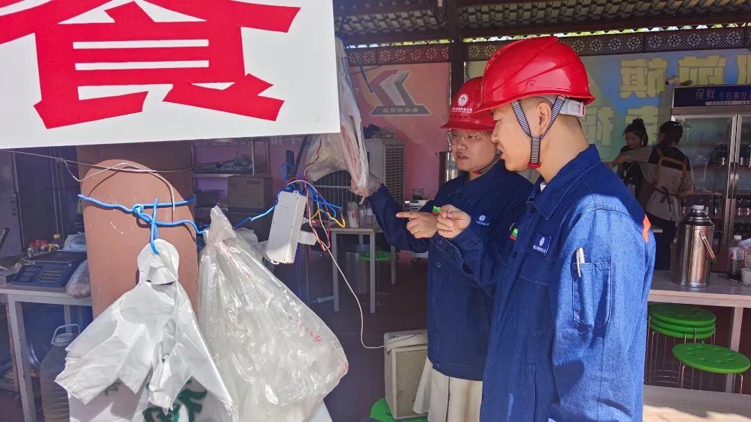 电力工作人员正在农贸市场检查用电安全