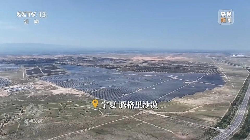 在国家“沙戈荒”基地重点项目——腾格里“沙戈荒”新能源基地,440余万块光伏板正在“全勤打卡”。这个新能源基地是国家“十四五”规划纲要中明确提出的九大清洁能源基地之一,也是我国首批千万千瓦级“沙戈荒”新能源基地。