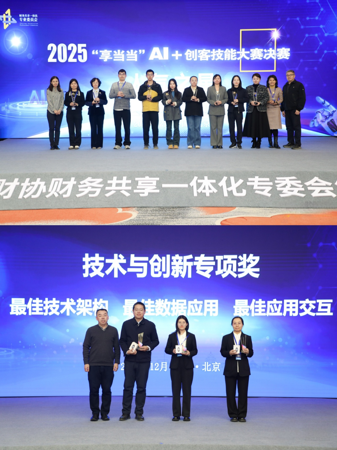 2025年12月4日,“享当当”AI+创客技能大赛在北京圆满收官。经过激烈角逐,内蒙古电力集团财务共享中心参赛团队脱颖而出,一举斩获“最佳技术架构奖”及“最佳人气奖”两项殊荣!