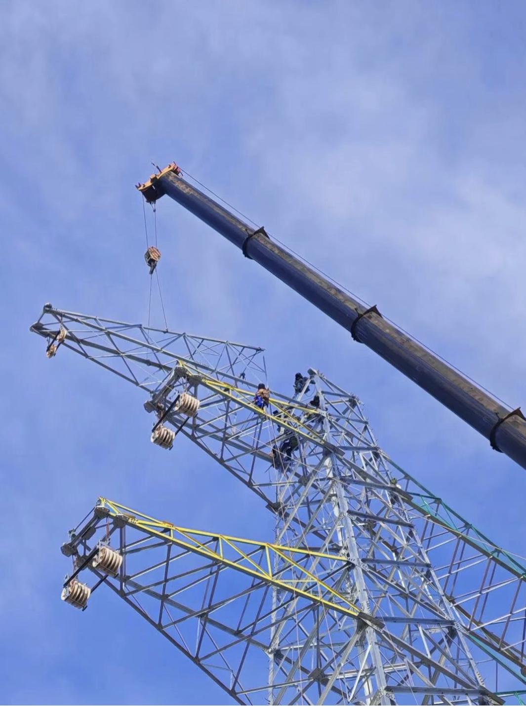 该工程新建同塔双回500千伏输电线路62千米,推广应用新型高导电率节能导线、节能金具等新材料与新工艺,有效降低线路传输损耗,提升远距离输电效率与工程建设质量。同时,作业现场党员突击队充分发挥先锋模范作用,在施工方案优化、现场安全管控、机械化施工推进等关键环节精准献策,既减少了工程建设对周边环境的影响,又有效降低施工风险,大幅提升建设效率。
