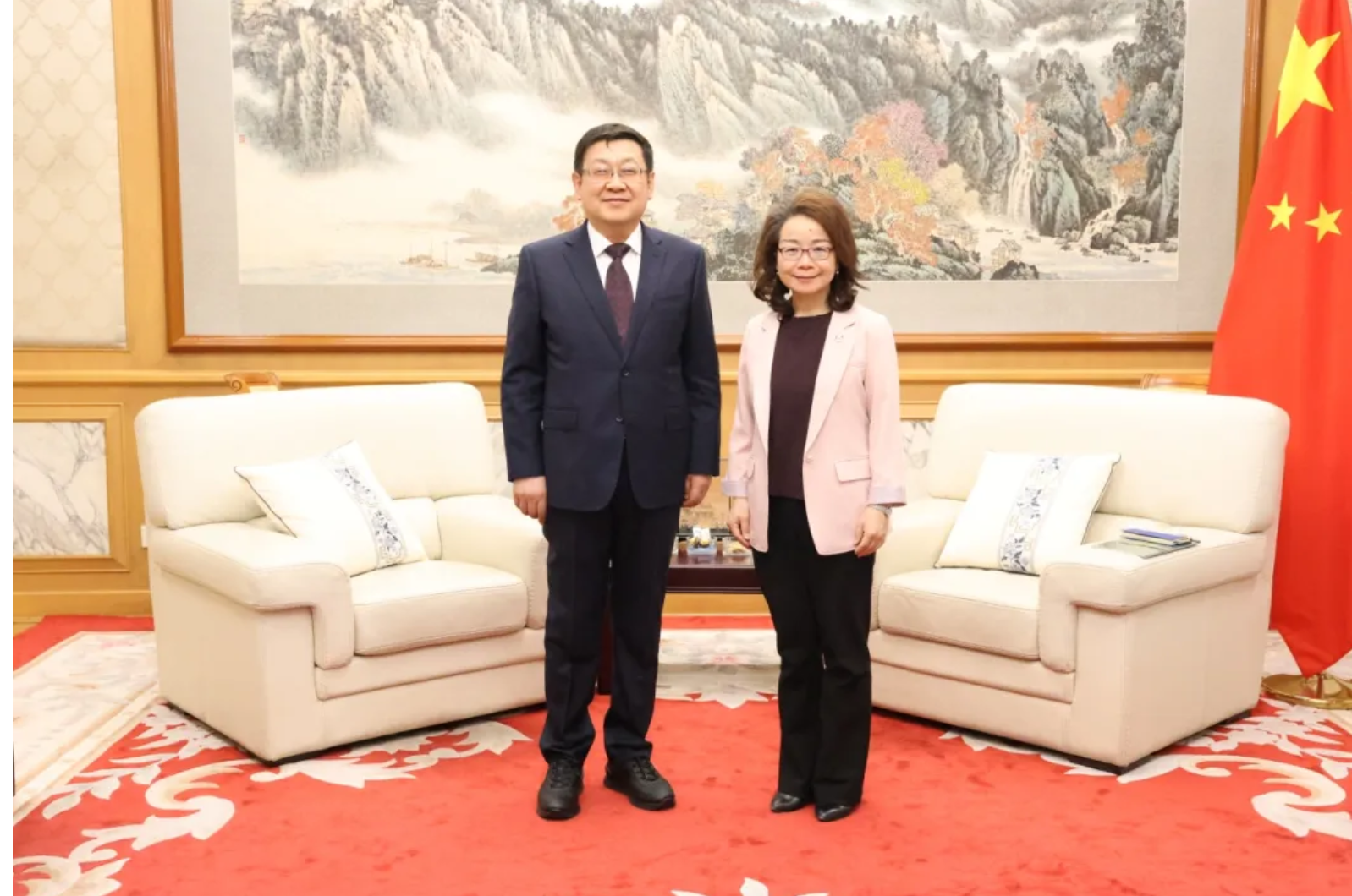 12月15日下午,张海峰抵蒙后第一时间前往中国驻蒙古国大使馆拜会沈敏娟大使,详细介绍了内蒙古电力集团深耕蒙古国能源市场30余年的实践成果。沈敏娟大使高度评价内蒙古电力集团在中蒙能源合作中发挥的重要支撑作用,她希望内蒙古电力集团要在巩固现有业务的基础上进一步加强与蒙古国知名能源企业的对接联络,增进与相关中资企业的沟通,中国驻蒙古国大使馆也将一如既往支持在蒙中资企业发展,共同推动中蒙合作向更深层次拓展。